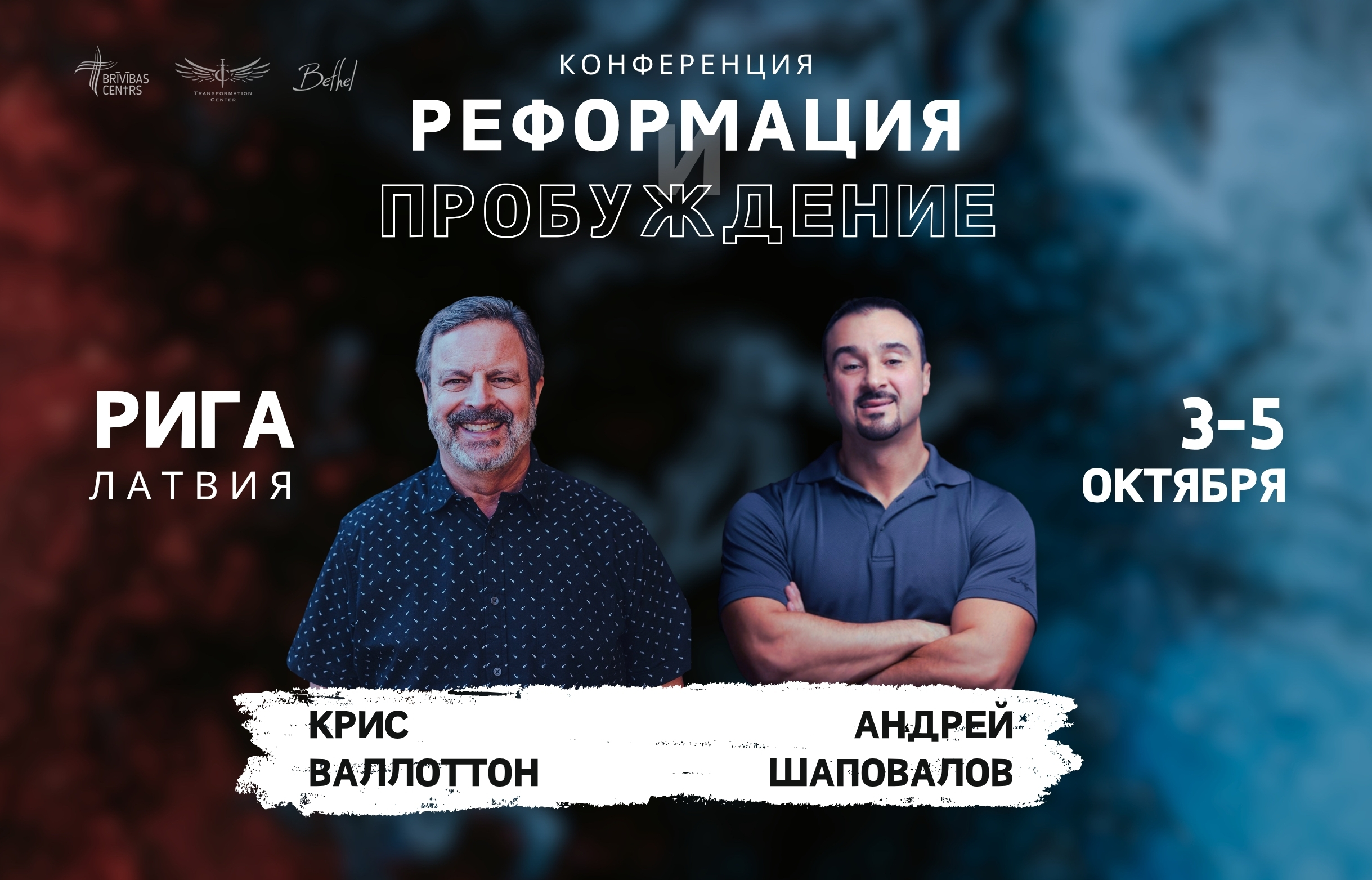 Приглашаем всех на конференцию «Реформация и Пробуждение» с пасторами Андреем Шаповаловым и Крисом Валотоном 3-5 октября 2025 года в Риге, ул. Дурбес 4, конференц-зал «H2O».